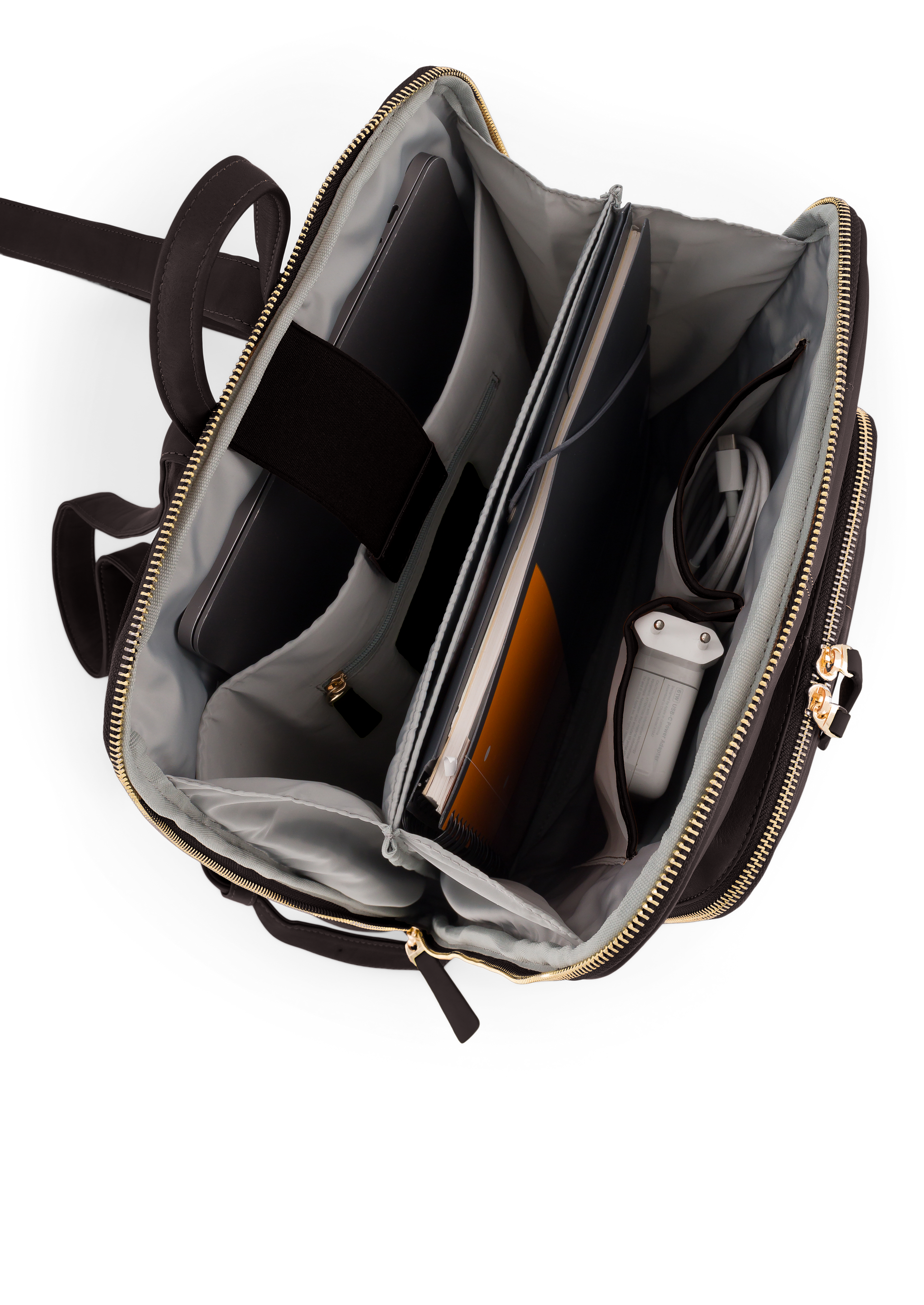 Le premier se compose de trois compartiments et d'une pochette intérieure avec fermeture à glissière. Vous pouvez y ranger un ordinateur, une tablette, un cahier...
